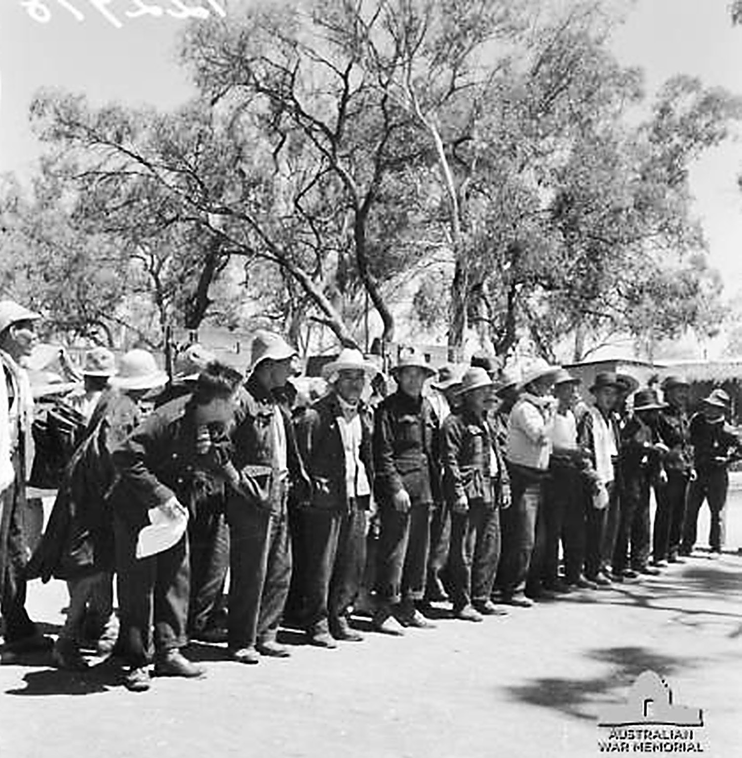 Japanese civilian internees at Woolenook woodcutting camp near Barmera, South Australia, 1944 (Australian War Memorial, ID 122978).